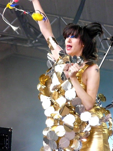 Das erste Lied, was ich halbwegs mitbekomme ist Gimme Sympathy vom neuen Album Fantasies. Ich stehe aber noch sehr ungünstig, auf der Anlage wimmelt es bereits jetzt vor Menschen und keiner will seinen Platz preisgeben, der ihm den Blick auf die hübsche Emily Haines garantiert. Ich kann mich aber doch langsam nach vorne durcharbeiten und sehe die wilde Frontlady nun über die Bühne wirbeln. Sie ist noch blonder, als ich sie mir vorgestellt hatte und ihr Kleid sitzt auf ihrem schlanken Körper tadellos. Mit Dead Disco kommt dann bald auch schon ein Lied, das ich gut kenne, denn das alte Album Old World Underground, Where Are You Know habe ich im Gegensatz zu Fantasies oft und gerne gehört. Zwar bot es mit seiner Mischung aus Post-Punk und New Wave im Stile von Blondie nichts wirklich Neues, aber die zahlreichen Hits hatten schon starken Suchtcharakter. Auch Monster Hospital, was nun folgt, ist alt und nach wie vor zugkräftig. Unzählige Hände fliegen nach oben, das Publikum amüsiert sich wie Bolle. Schade bloß, das zum Abschluß mit Stadium Love ein ziemlich platter Song das Set beendet.