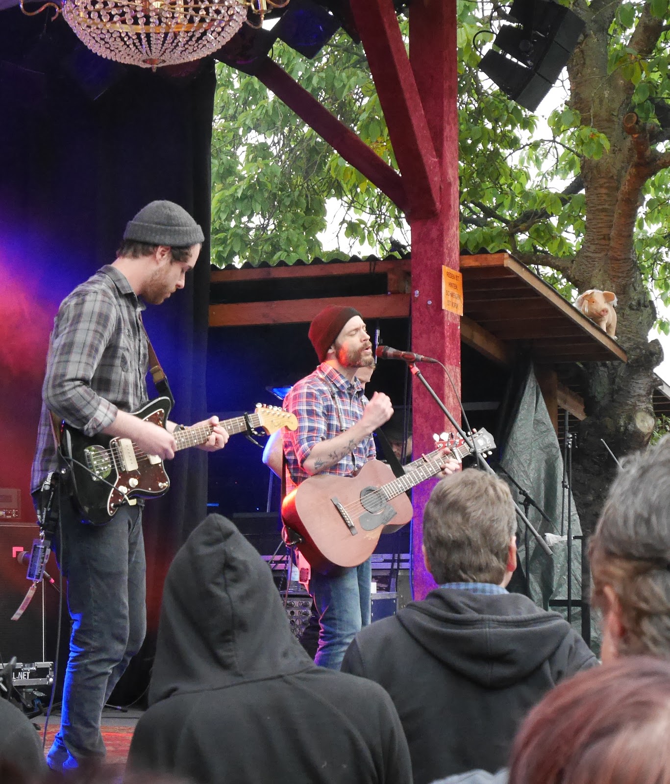 Den sanften musikalischen Anfang machen am Freitagspätnachmittag Easy October aus Schweden mit hübschen folkpoppigen Songs. Klingt nicht schlecht, ist aber ein bisschen harmlos. Sie kriegen mich zu diesem Zeitpunkt im sonnigen Glitterhouse Garten nicht wirklich, aber sie bekommen nächste Woche in einem Stuttgarter Wohnzimmer auf jeden Fall nochmal eine Chance. Sollte deutlich besser funktionieren.